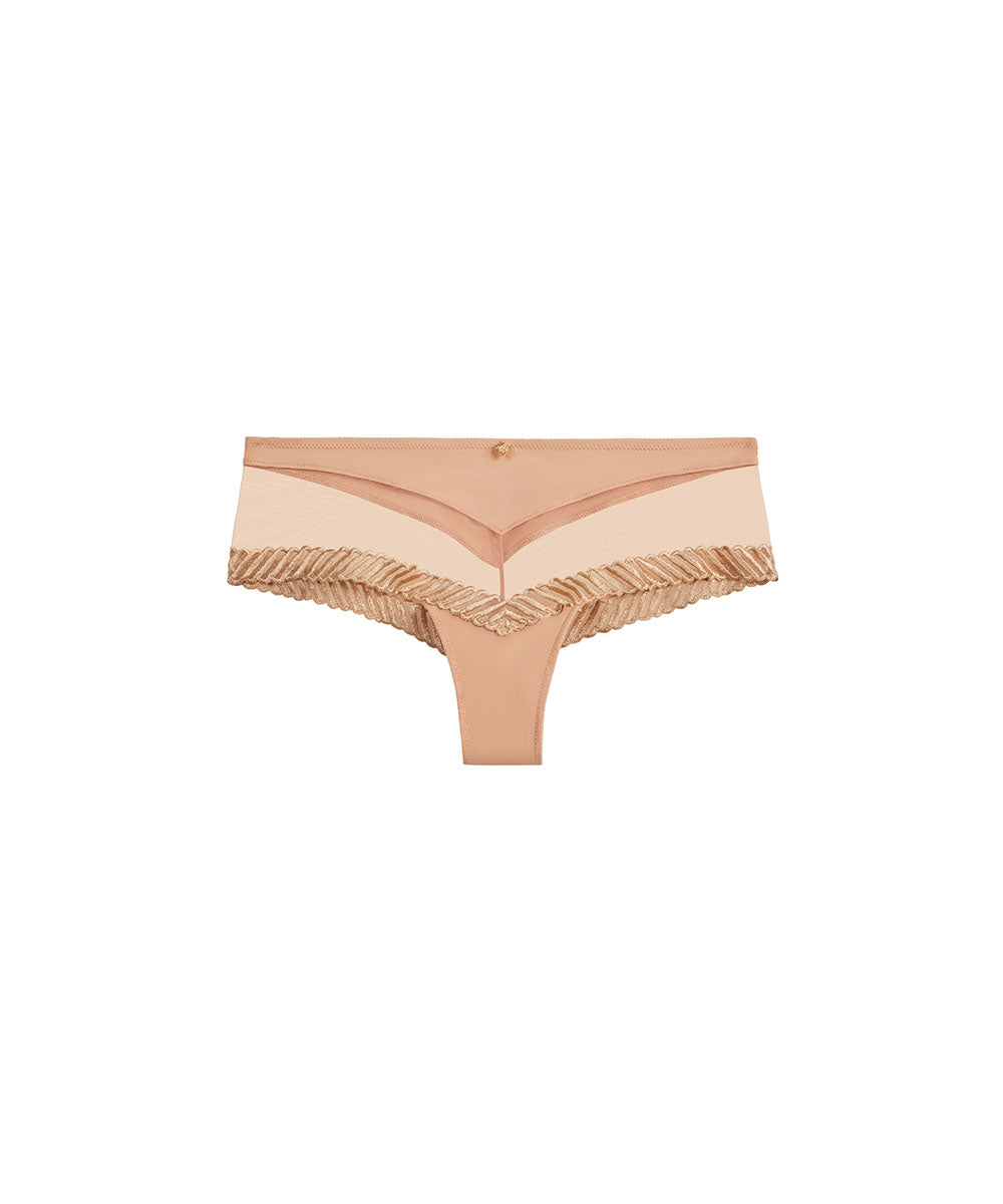 Smuk hipstertrusse med eksklusive detaljer fra Aubade. Trussemodellerne hipster og shorts har en vandret benudskæring. Hipstertrussen går lidt op på balden og tegner et vandret snit mens shortsene dækker hele balden. Særligt populære er hipstermodellerne med fine franske blonder, som tegner et smukt mønster hen over balderne og de mange sømløse og laserskårne hipstertrusser og shorts, som ikke ses under tætsiddende tøj.