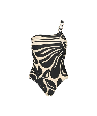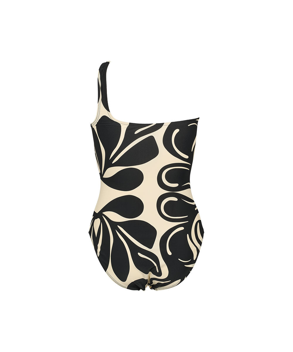 Capri - One Shoulder Aop Swimsuit - 024 Black/ivory