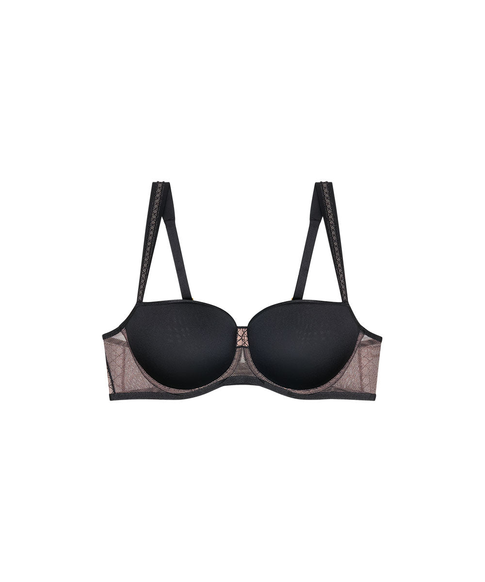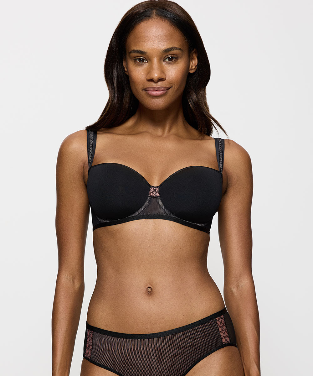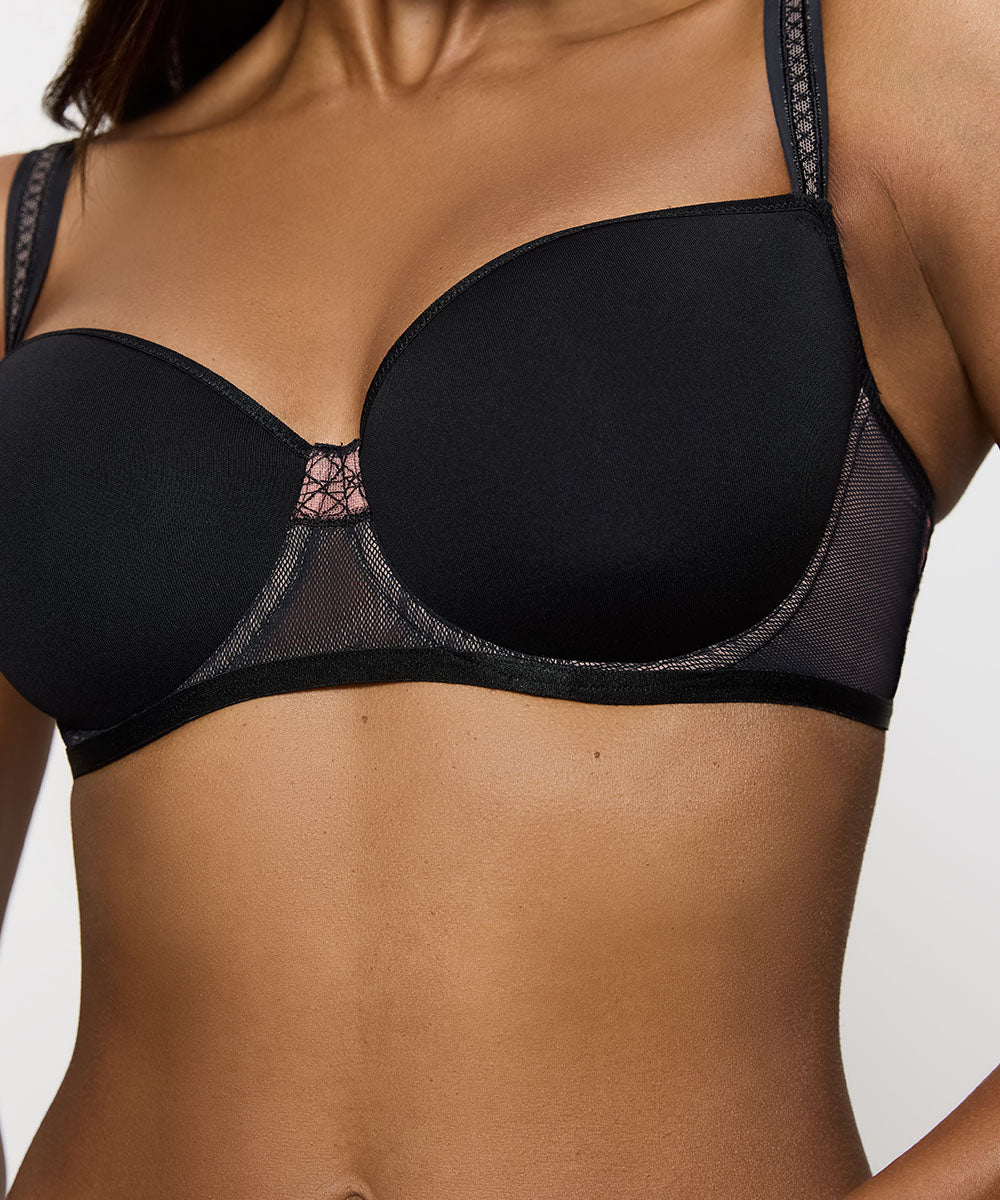Elegant halvskålsbh fra Triumph i åndbart spacer-materiale, der former barmen uden at forstørre den. Bh'en er designet med en forførende udskæring, som bidrager til en løftende og samlende effekt. Halvskålsbh'er kaldes ofte balconetter. Balconette bh'er har et vandret snit på skålene og dækker halvdelen af barmen. Stropperne er placeret yderst ude på skuldrene, og balconettebh'en er derfor perfekt til toppe med dybe/ vide udskæringer.