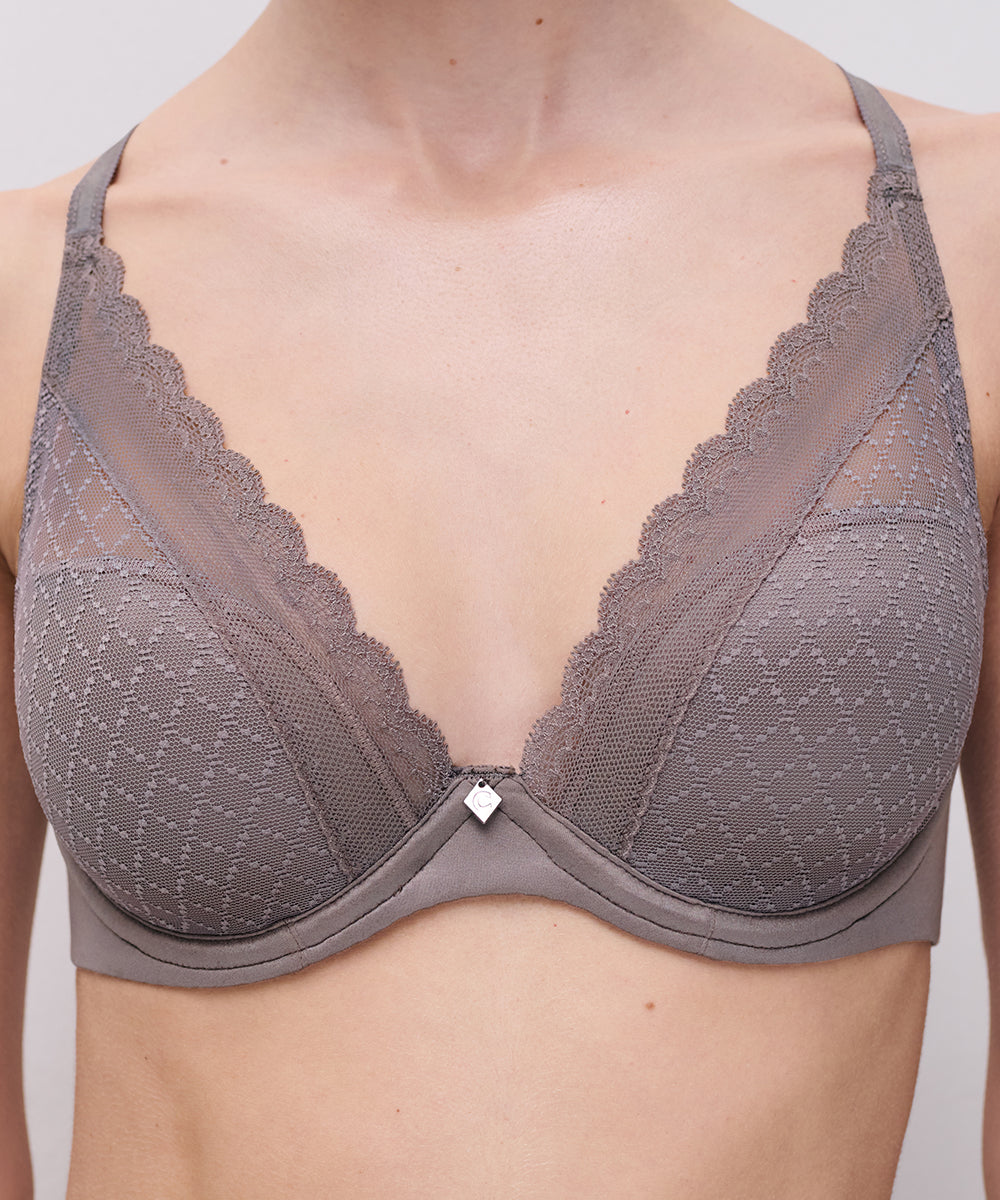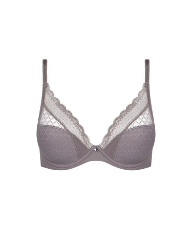 Trekvartskålsbh fra Chantelle EasyFeel, der er inspireret af Chantelles bestseller Festivite. Bh'en er formet som en trekantsbh, med et lavt midterstykke, der samler barmen og giver en flot dyb dekolletage. Bh'en er designet i en blød, flad blonde, som er diskret under kropsnært tøj. Bh'en har let vatteret skåle.
