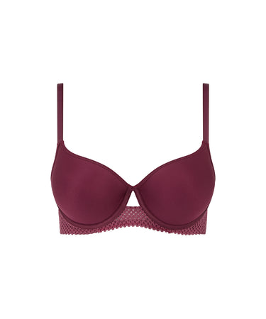 T-shirt bh fra Chantelle Pulp. Bh'en har utrolig bløde stropper og sidestykker, hvilket gør den meget behagelig at bære. God støtte og høj komfort med skåle i "memory foam", der former sig efter barmen. Trekvartskålsbh'en er god under tætsiddende tøj, da den har glatte skåle.