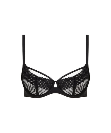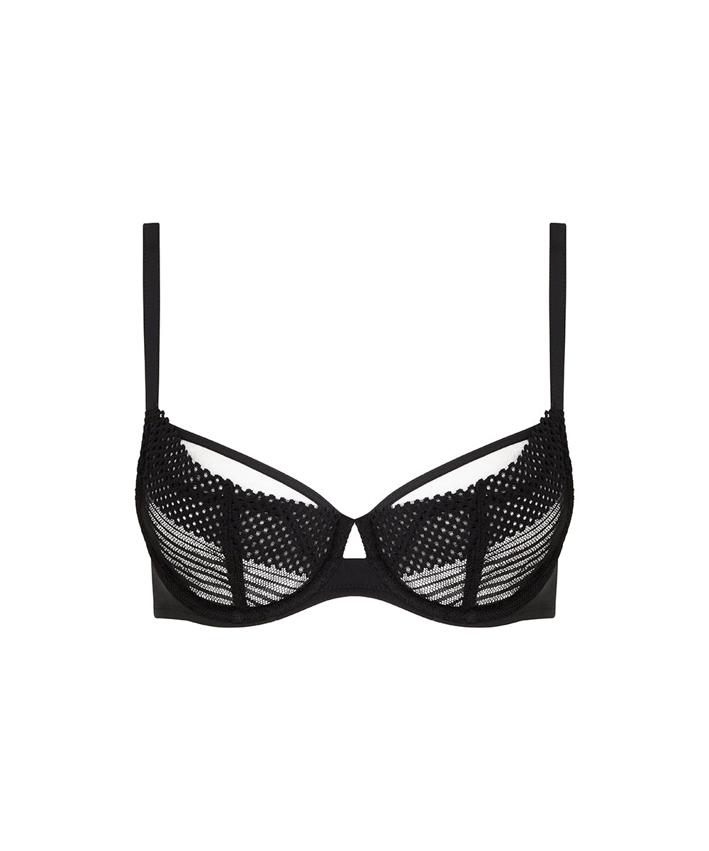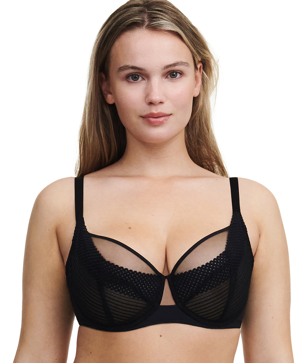 Yndig fuldskålsbh med tyl og blonde på skålene, der har lavet i en transparent tyl fra Chantelle Pulp. Fuldskålsbh'en er designet med uigennemsigtig skål med mesh på øverst på skålene, for et strejf af lethed og gennemsigtighed. Bh'en har en høj ryg i glat og blød strik, med mesh-for for bedre støtte. Fuldt justerbare raffinerede stropper. Stropperne er placeret godt oppe på skuldrene og danner ofte et U på ryggen, så de ikke så let glider ned og så de samtidig giver et bedre hold. Bh'ens sider og rygstykke er ekstra forstærket for at give en bedre støtte til barmen. Fuldskålsbh'en er særlig god til kvinder med en større barm eller til dig, som, uanset størrelse, gerne vil have den optimale støtte og hold fra din bh.