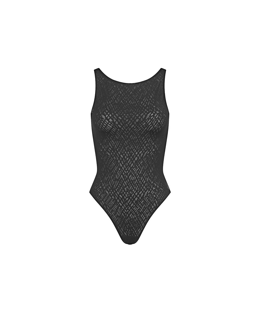Enkel bodystocking fra Sloggi Zero Feel Bliss. Brug denne bodystocking som en usynlig base, der kombinerer den sømløse, usynlige komfort i Zero Feel-serie med grafiske blonder med 360° stretch. Bodystockingen er designet md en høj halsudskæring og har fritskårne kanter, som gør den helt usynlig under tøjet. Bodyen er uden bøjle.
