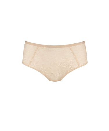 Komfortabel, blød og høj taitrusse. Trussen er designet i en fin all-over blonde med forstærket frontstykke. Materiale: 76% Polyamide, 24% Elastane.