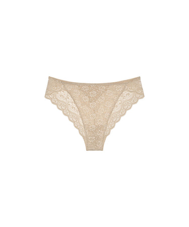 Elegant høj tai trusse fra Triumph i fuld blonde med blød og tynd elasticitet i glat microfibre materiale. Taitrussen er den bedst solgte og mest almindelige trussetype. Taitrussen har som regel et skråt snit bagpå og dækker det meste af balderne. Et højt bensnit fortil og et smalt sidestykke får benene til at syne længere - altså er modellen god til dig, der gerne vil fremhæve ben og tilføre optisk længde. Materiale: 77% polyamid, 23% elastan