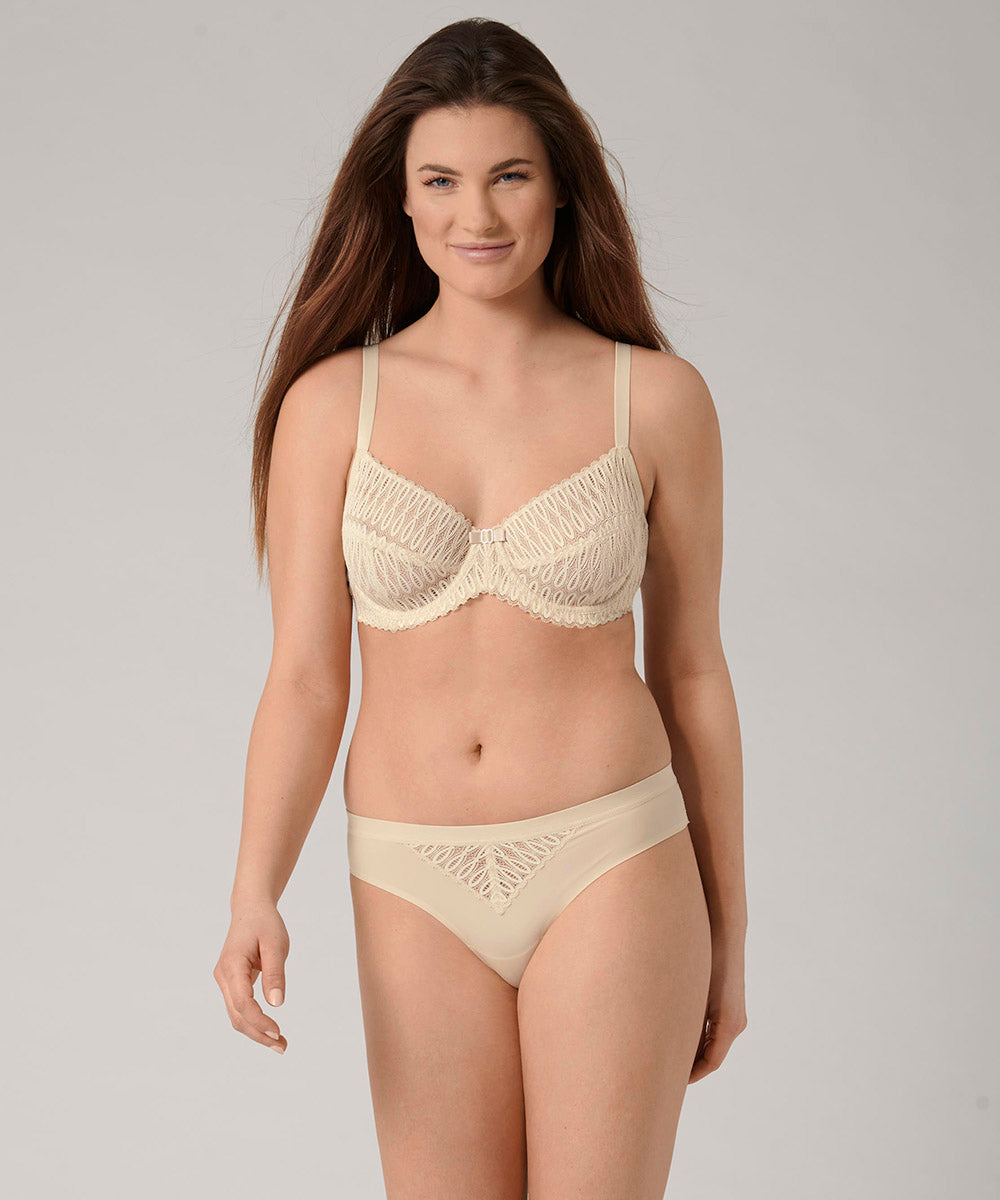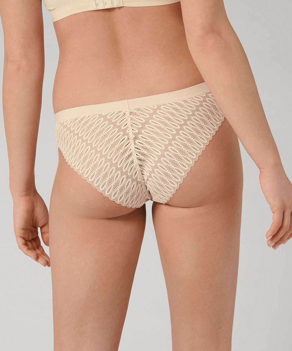 Sofistikerede og flirtende hipsterskåret trusse med halvt-dækkende rygsektion. Trussen er designet med mønstret blonde detalje, som gør den både behagelige og elegante. Trussen har fin strækbar linning til perfekt positionering og er usynlig under tætsiddende tøj.