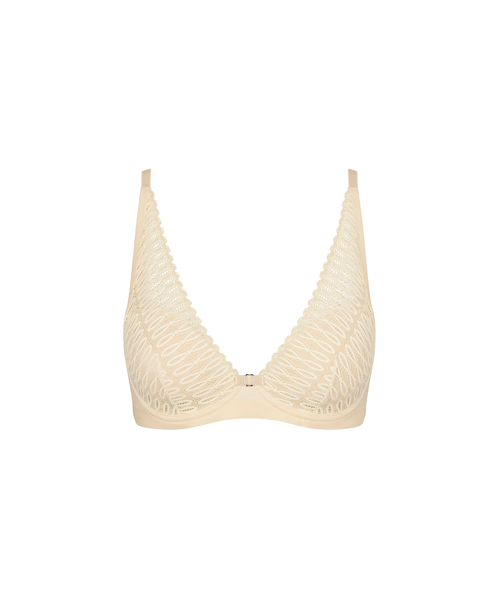 Forførende lavtsiddende trekvartskåls bh, der tilbyder delikat, mønstret blonder og maksimal komfort. Polstret bh med lav udskæring og sexede blondedetaljer for et feminint look.