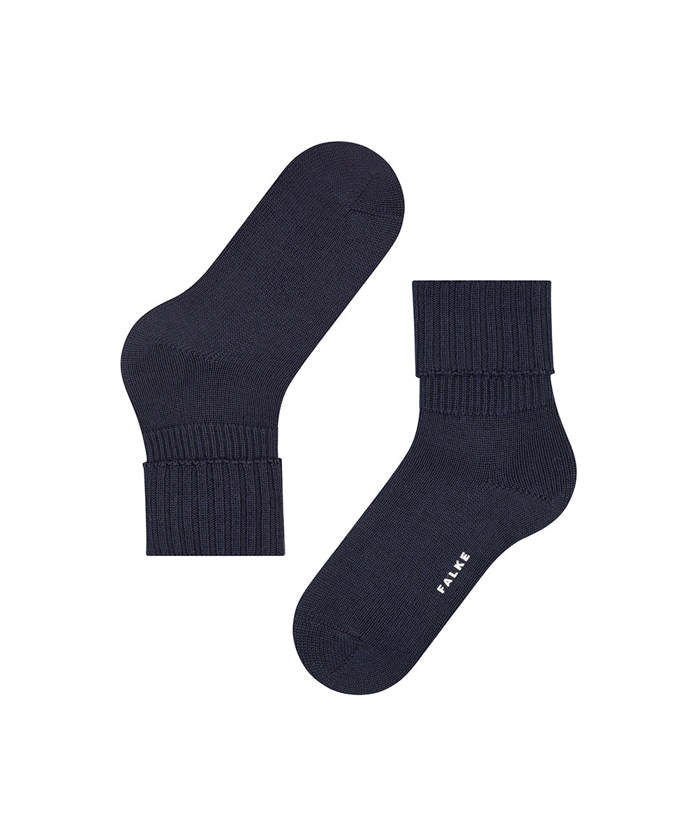 De hyggelige vendestrømper i blød jomfruuld holder fødderne varme og komfortable på kolde dage. Med deres rustikke ribstruktur passer de perfekt til afslappede, casual looks. Materiale: 70% jomfru-uld, 30% polyamid