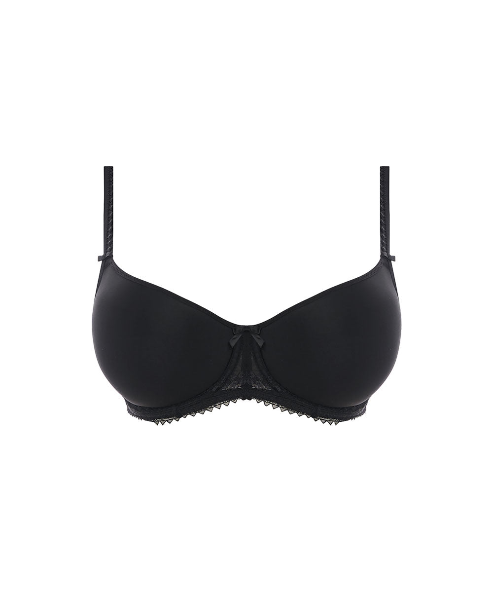 Enkel og elegant trekvartskålsbh, hvor skålene er lavet i et spacermateriale fra Fantasie. Det innovative materiale er utroligt blødt og samtidigt åndbart, hvilket gør det ideelt til lingeri. Bh'en er ideel som T-shirtbh under tætsiddende tøj. Bh'en er dekoreret med fine detaljer på stropperne.