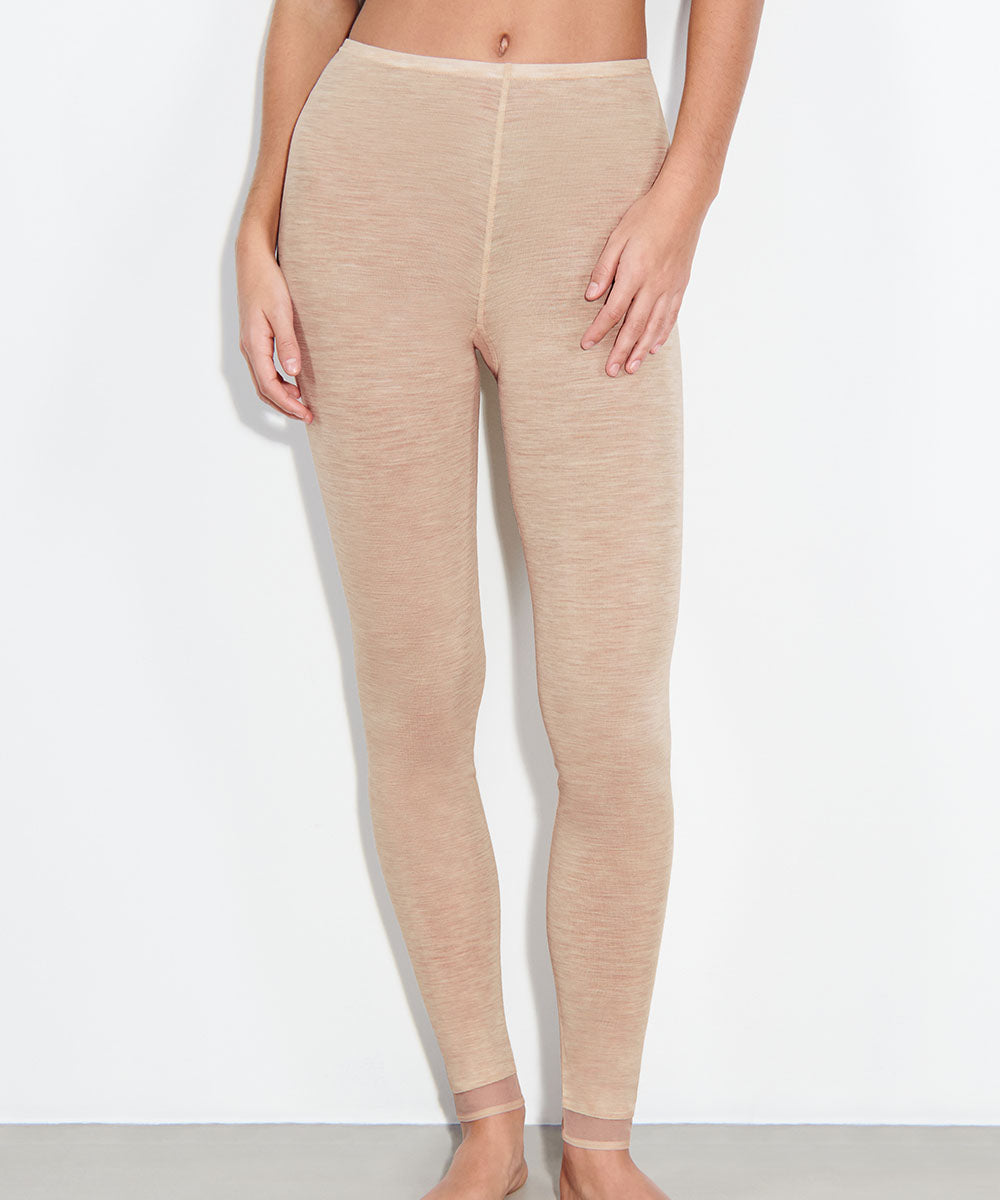 Elegante leggings i uld med meshdetaljer ved anklerne fra Femilet. Leggingsene kan anvendes under tøjet eller som en del af outfittet. Uld kan absorbere op til 35% fugt uden at det føles fugtigt at bære og isolerer helt fantastisk. Det er derfor perfekt at iføre sig i de kolde vintermåneder enten i form af nattøj eller undertøj. Produkter der indeholder en kombination af uld og silke vil den få den egenskab, at det bliver temperatur-regulerende. Det betyder, at det kan varme på kolde dage og køle på varme dage. Det er vigtigt at følge vaskeanvisningerne for uldprodukter og at anvende vaskemiddel beregnet til uld. Du kan med fordel lufte dine uldprodukter i stedet for at vaske på det, da uld er selvrensende.