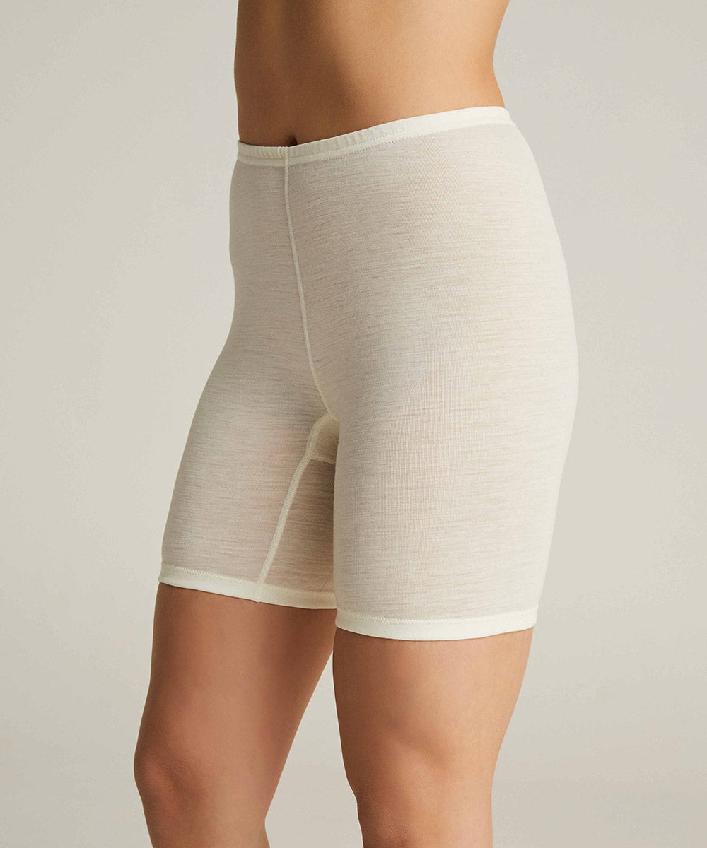 Feminine shorts i uld fra Femilet. Disse shorts er yderst anbefalingsværdige til kvinden, som ønsker at holde underliv og øverste del af låret varmt. Uld kan absorbere op til 35% fugt uden at det føles fugtigt at bære og isolerer helt fantastisk. Det er derfor perfekt at iføre sig i de kolde vintermåneder enten i form af nattøj eller undertøj. Produkter der indeholder en kombination af uld og silke vil den få den egenskab, at det bliver temperatur-regulerende. Det betyder, at det kan varme på kolde dage og køle på varme dage. Det er vigtigt at følge vaskeanvisningerne for uldprodukter og at anvende vaskemiddel beregnet til uld. Du kan med fordel lufte dine uldprodukter i stedet for at vaske på det, da uld er selvrensende.