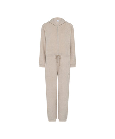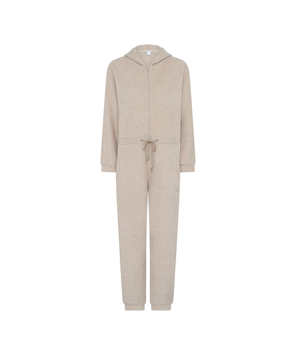Behagelig hjemmedragt fra CCDK lavet i et blødt materiale. Dragten har en stor krave med hætte og kan strammes ind i taljen. Brug den til de kolde morgener eller når du bare vil hygge og holde dig varm.