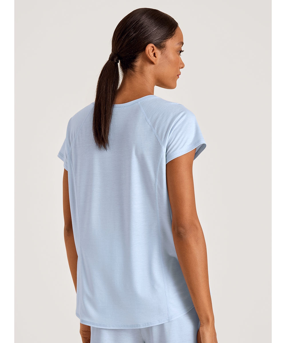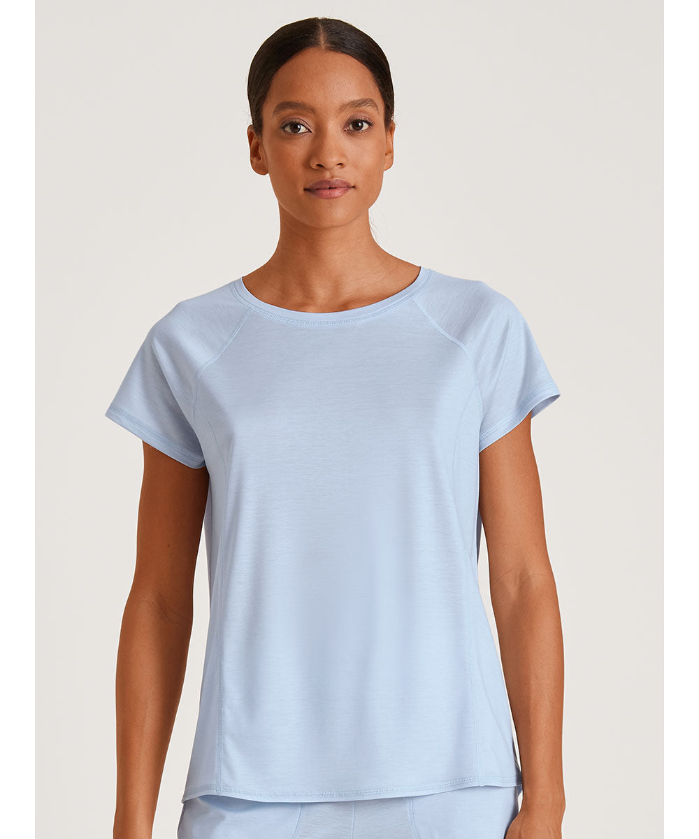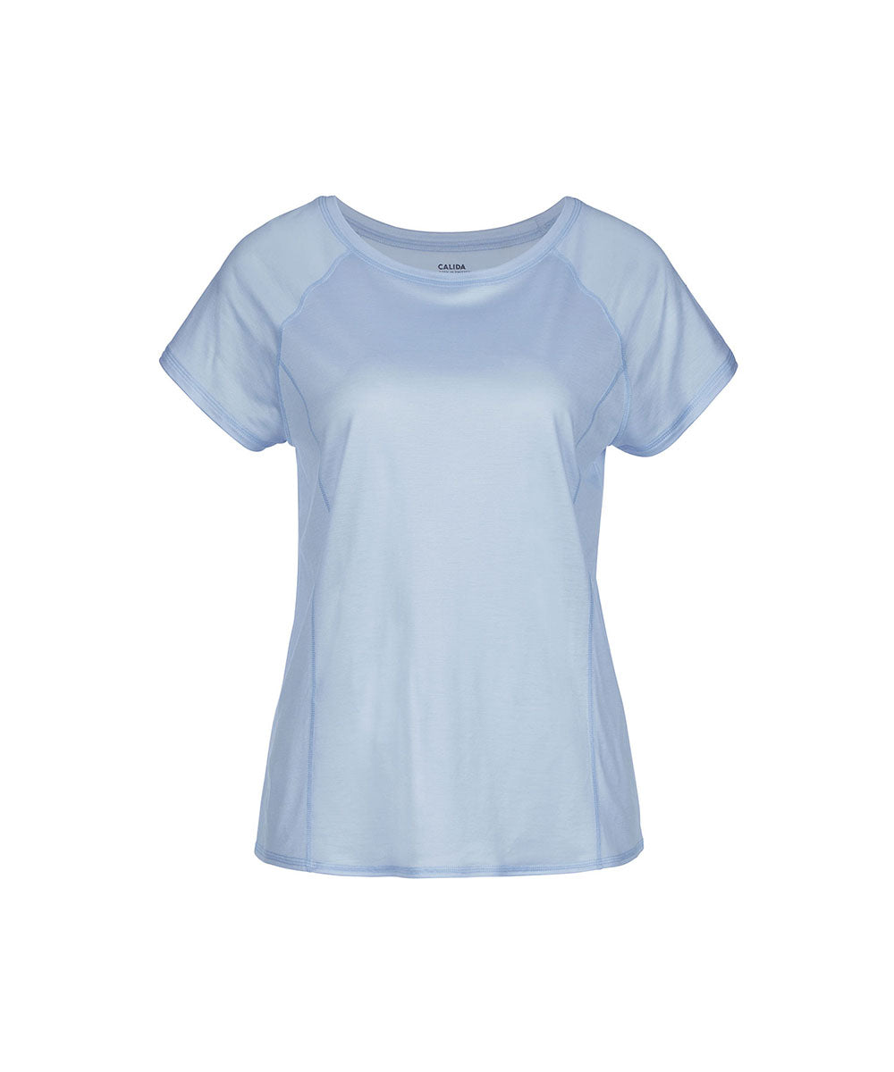 Feminin t-shirt fra Calida med korte ærmer og en løs pasform. T-shirten er lavet i et kølende materiale. Vær obs. på størrelsesguide.