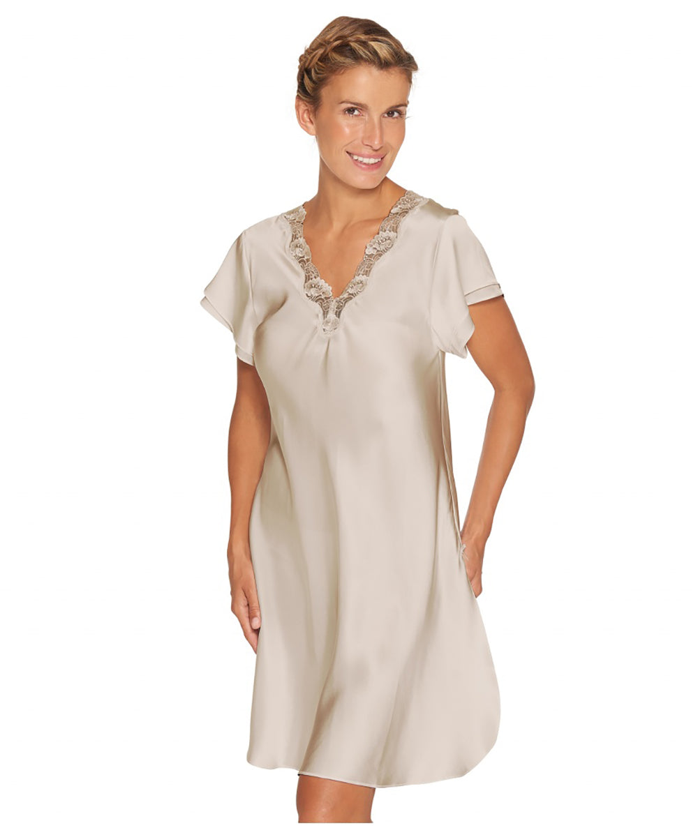 Pure Silk - Nightgown w.lace, short sleeve - 104 BAILEY
