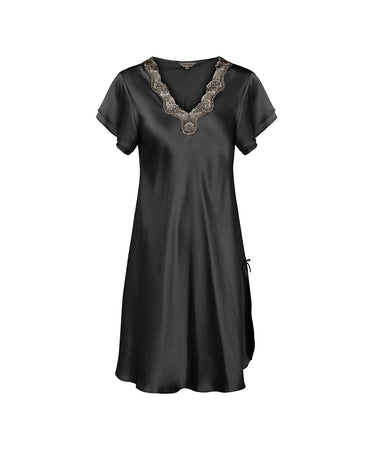 Pure Silk - Nightgown w.lace, short sleeve - 232 BLACK/GOLD