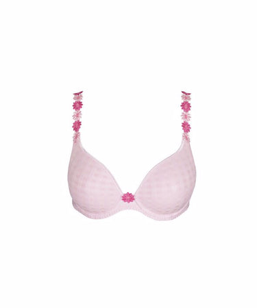 Feminin og elegant bh med smukke broderede detaljer, fra Marie Jo. Bh'en er med bøjle og en let vattering, der sammen med de hjerteformede skåle, giver en flot og rund barm. De glatte skåle gør bh'en ideel under kropsnært tøj. De ikoniske Avero stropper med broderede blomster, kan blandt andet laves til halterneck, hvor stropperne bliver lukket i nakken, som det fremgår af billedet.