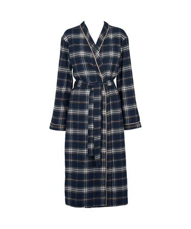 Lang ternet kåbe fra Missya. Morgenkåben er designet med bindebånd i taljen. Kåben er lavet i lækkert og åndbart bomuld.