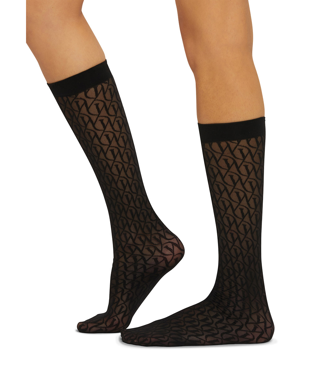 W Lace - Knee-Highs - 7005 BLACK