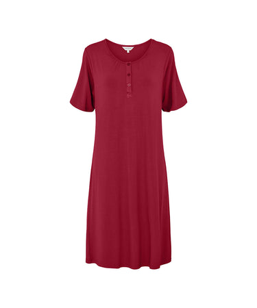 Bamboo - Long nightdress, short sleeve - 194 RUBY RED