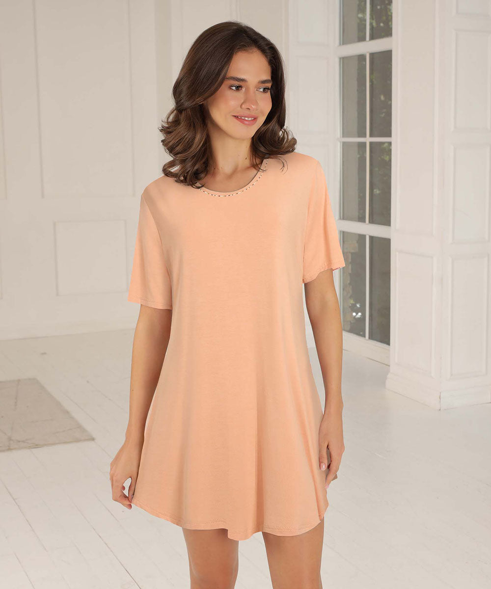 Bambus Homewear - Short-sleeve Nightdress - 646 APRICOT
