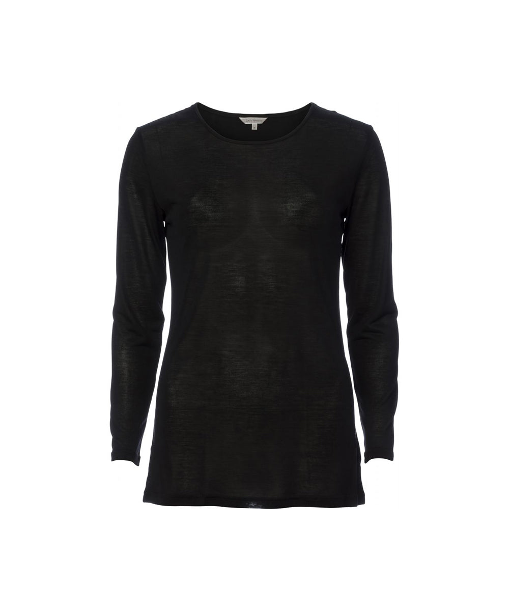 Enkel silke langærmede t-shirt fra Lady Avenue med rund hals. T-shirten er lavet i strikket silkejersey.