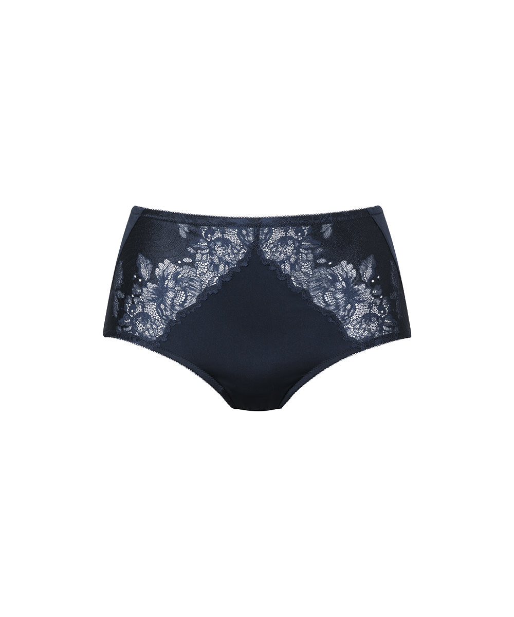 Højtaljet trusse fra Mey med fin blomsterblonde i siderne. Trussen er har god pasform og er lavet i et blødt, let skinende materiale. Maxitrussen er en højtaljet trusse med bredt sidestykke og lavt bensnit. Maxitrussen dækker den nederste del af maven og passer derfor godt til tøj, der går op i taljen.