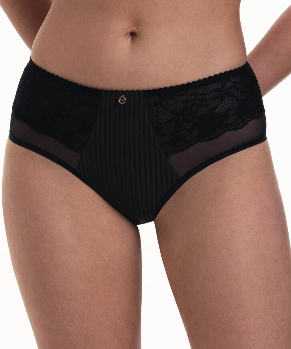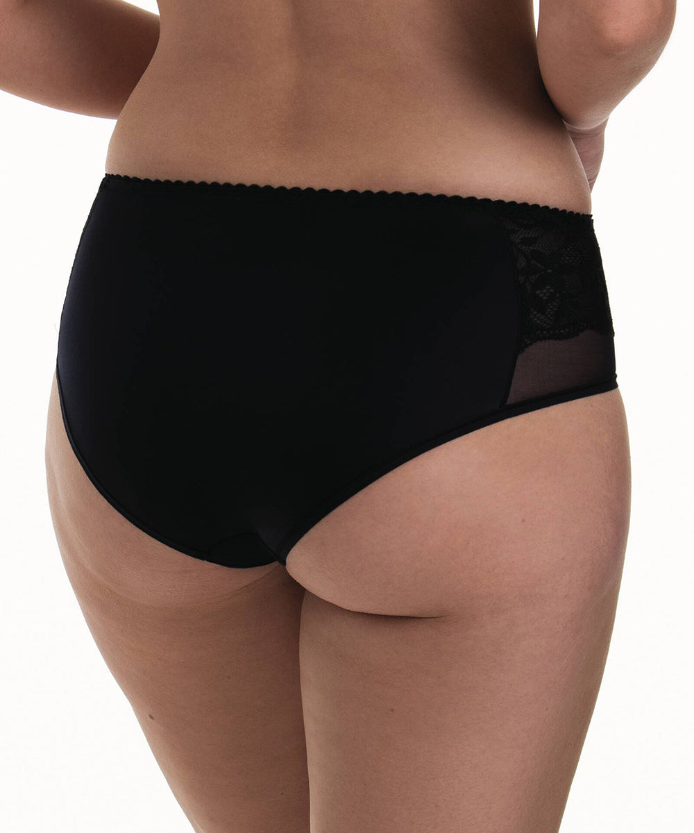 Klassisk højtaljet trusse med blonder fra Anita. Maxitrussen er en højtaljet trusse med bredt sidestykke og lavt bensnit. Maxitrussen dækker den nederste del af maven og passer derfor godt til tøj, der går op i taljen.