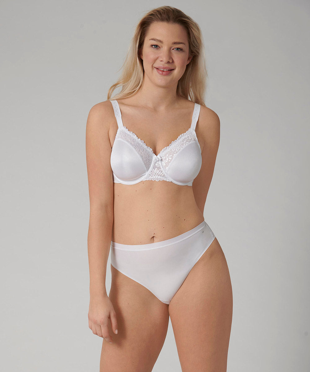 Klassiske minimizer fuldskålsbh fra Triumph. Denne minimizer er perfekt til kvinder med en stor barm. Denne lækre bh fra Ladyform Soft-serien giver den perfekte støtte og får din barm til at se en hel skålstørrelse mindre ud. Skålene er uden polstring i glat stof med fine broderidetaljer, og har formgivende bøjle og behagelig bred side og ryg. Trekvartskålsbh'en er lavet med LYCRA®, som perfekt tilpasser sig til din krop for max. frihed og fleksibilitet. Materiale: 42% polyester, 40% polyamid, 18% elastan