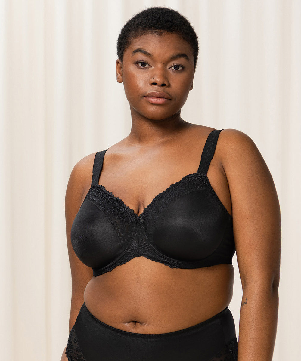 Klassiske minimizer fuldskålsbh fra Triumph. Denne minimizer er perfekt til kvinder med en stor barm. Denne lækre bh fra Ladyform Soft-serien giver den perfekte støtte og får din barm til at se en hel skålstørrelse mindre ud. Skålene er uden polstring i glat stof med fine broderidetaljer, og har formgivende bøjle og behagelig bred side og ryg. Trekvartskålsbh'en er lavet med LYCRA®, som perfekt tilpasser sig til din krop for max. frihed og fleksibilitet. Materiale: 42% polyester, 40% polyamid, 18% elastan