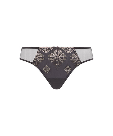 Stringtrusse fra Chantelle med fine detaljer af blonder og mesh, både foran og bagpå trussen. String og tangatrusser er særligt velegnede under tætsiddende bukser, kjoler og nederdele, da bagstykket - en tynd streng mellem balderne - ikke efterlade synlige overgange under tøjet. Sting og tangatrusserne har en høj benudskæring og får derfor dine ben til at syne optisk længere.