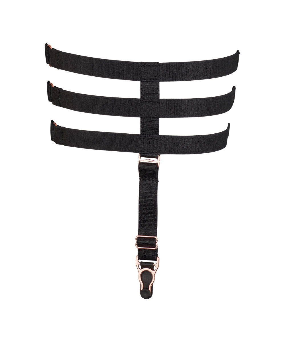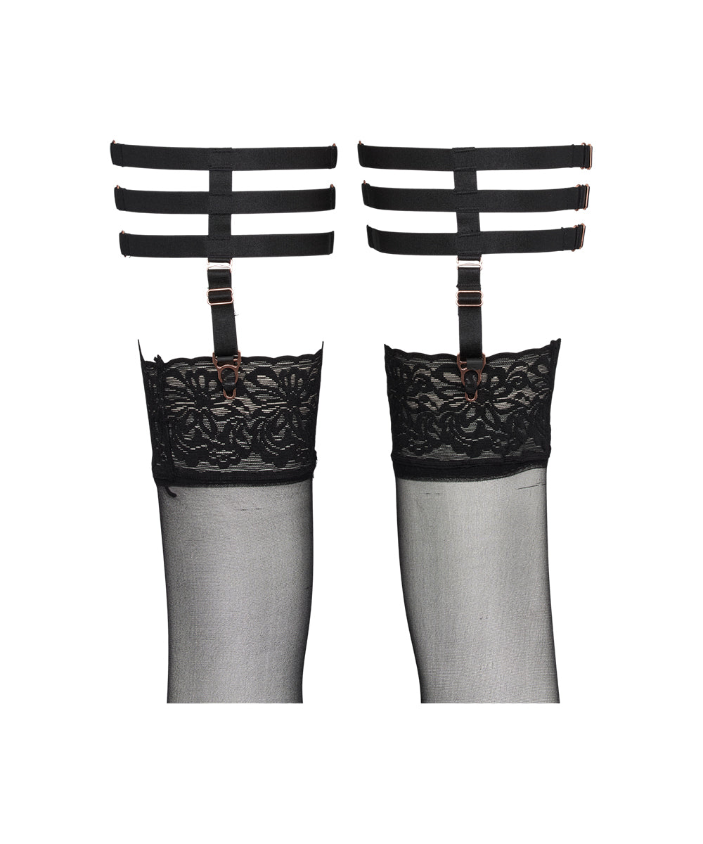 Suspender cuffs fra Missya, der kan holde dine strømper. Strømpeholderen kan justeres både i omkredsen om benet og længden, alt efter hvor høje dine strømper er.