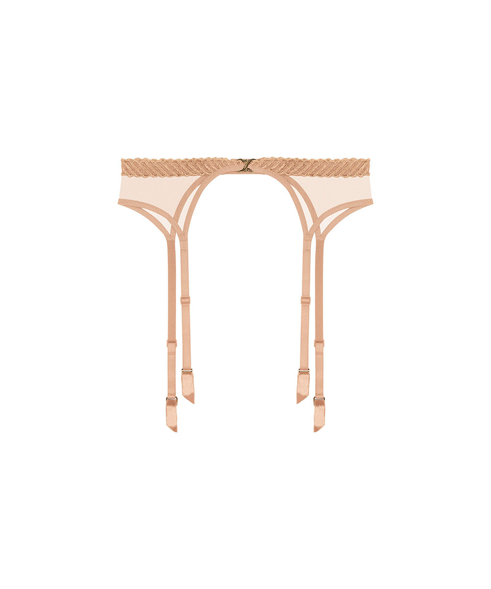 Smuk strømpeholder i supereksklusiv blonde fra Aubade. Suspender bæltet er et elegant lingeri accessory. Suspender bæltet er et korset, der bæres omkring taljen. Afhængigt af modellen har Aubade's suspender bæltet aftagelige stropper, der fastspændes til strømper.