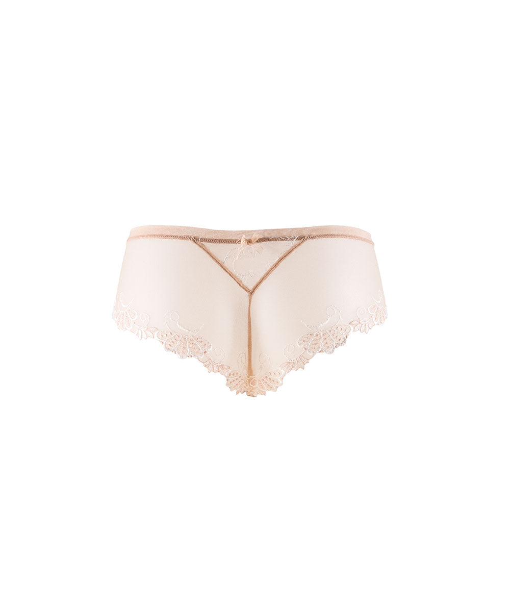 Elegant hipstertrusse fra Lise Charmel designet med yndige guipure broderier, hvor hver detalje bliver omhyggeligt bearbejdet. Trussemodellerne hipster og shorts har en vandret benudskæring. Hipstertrussen går lidt op på balden og tegner et vandret snit mens shortsene dækker hele balden. Særligt populære er hipstermodellerne med fine franske blonder, som tegner et smukt mønster hen over balderne og de mange sømløse og laserskårne hipstertrusser og shorts, som ikke ses under tætsiddende tøj.