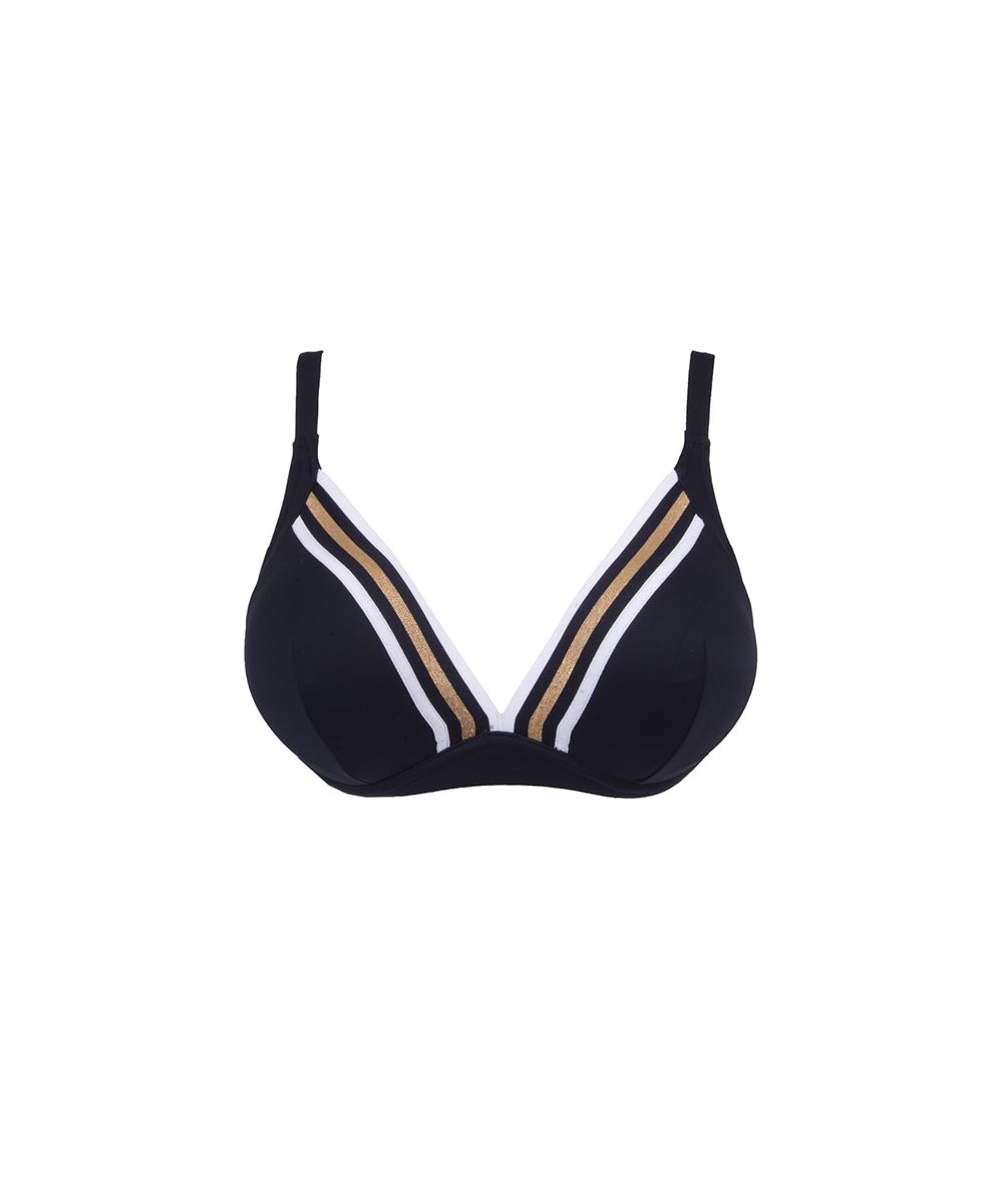 Skøn trekantet bikinioverdel fra Lise Charmel. Bikinitoppen er designet med yndige striber og har bøjle. Bikinitoppen har justerbare stropper. Badetøj skal gerne sidde stramt, da det udvider sig ved brug. Husk altid at skylle badetøjet op i koldt vand efter brug.