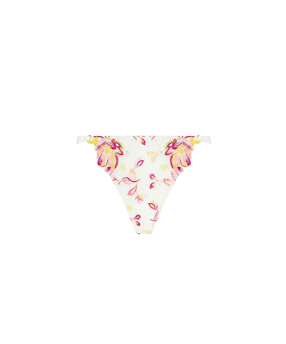 Elegant stringtrusse fra Lise Charmel i yndigt print og dekoreret med eksklusive blonder. String og tangatrusser er særligt velegnede under tætsiddende bukser, kjoler og nederdele, da bagstykket - en tynd streng mellem balderne - ikke efterlade synlige overgange under tøjet. String og tangatrusserne har en høj benudskæring og får derfor dine ben til at syne optisk længere.
