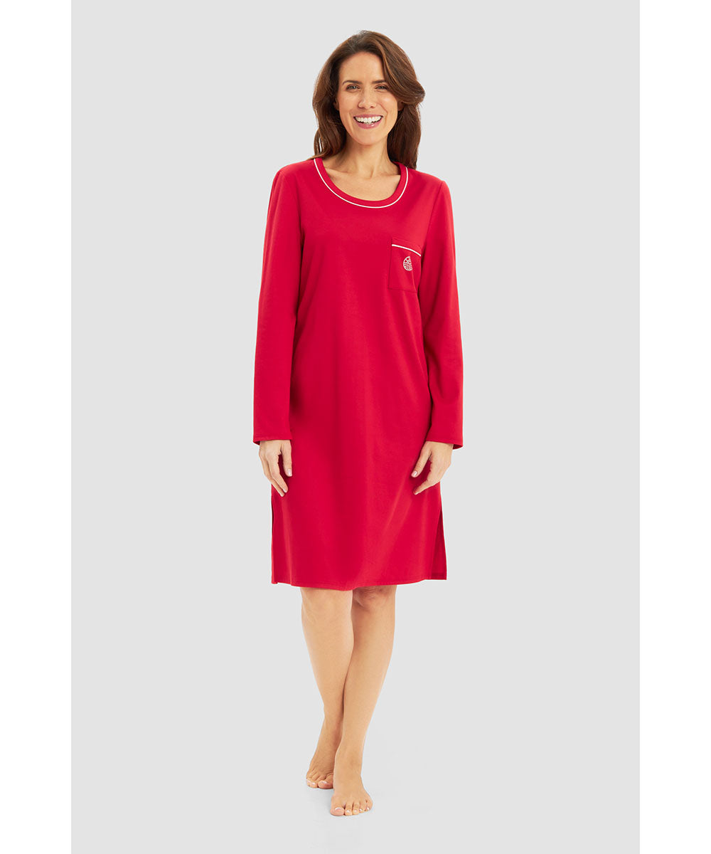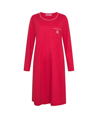 Klassisk og behagelig natkjole fra Louis Feraud, der har været en bestseller i mange år. Natkjolen er lavet i den højeste kvalitet af bomuld, der sikrer dig, at din favoritnatkjole holder sig lækker blød i mange år frem. Natkjolen har en rund halsudskæring og lange ærmer. Det velkendte Louis Feraud logo er placeret på brystet og tilføjer natkjolen et eksklusivt look.