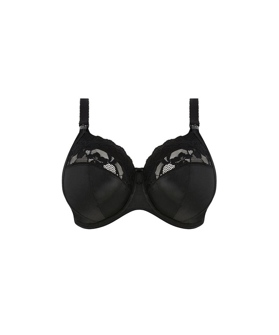 Ammebh fra Elomi. Bh'en er lavet som en fuldskål og er prydet med yndige blonder. Bh'en har bløde, støttende bøjler, der mindsker risikoen for at mælkekirtler bliver klemt. Skålene åbnes og lukkes nemt med en hånd. Skulderstropper og bagstykket bliver bredere i takt med større skålstørrelse.