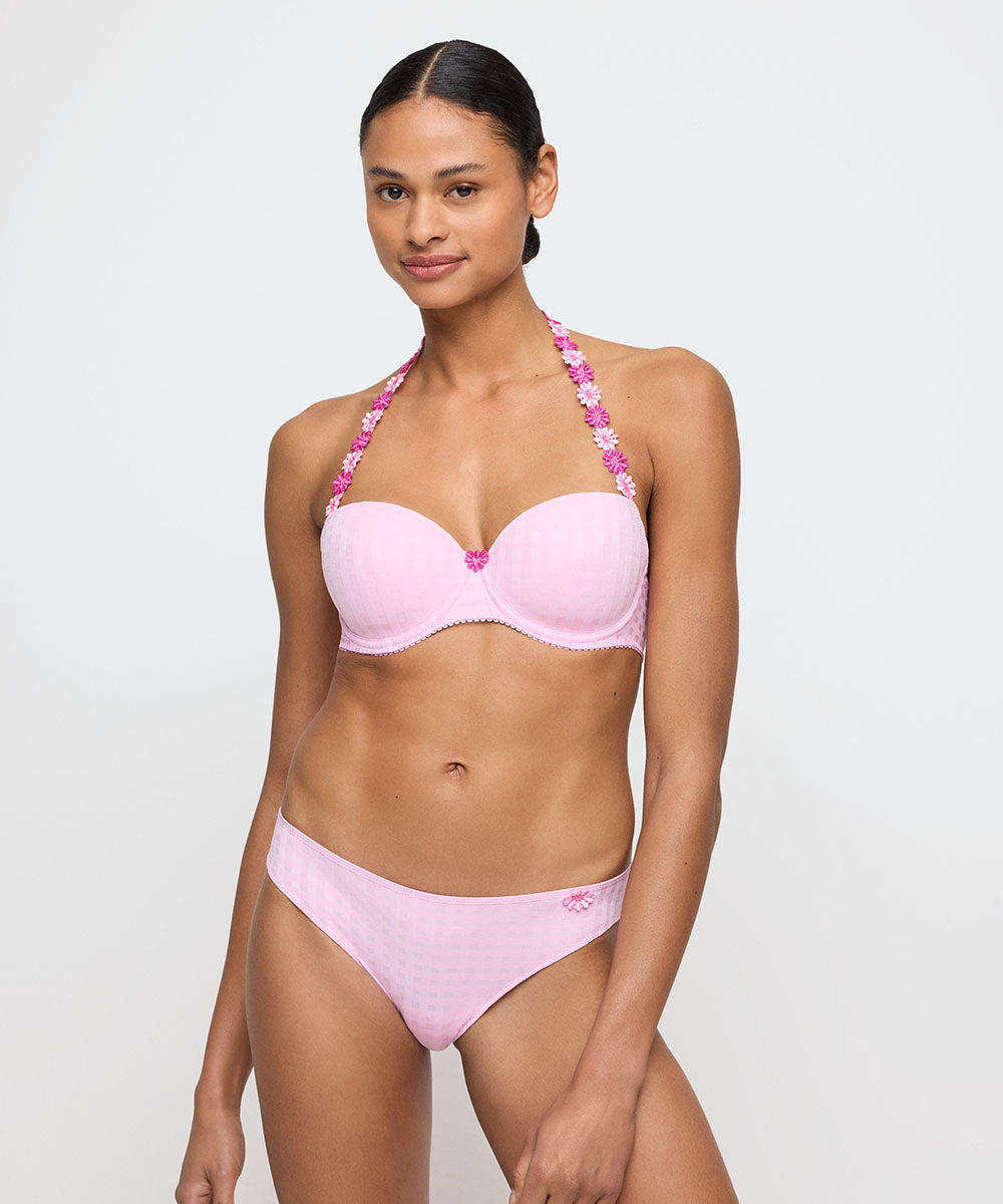 Smuk og elegant taitrusse fra Marie Jo i et opakt, let og komfortabelt materiale. Taitrussen er diskret dekoreret med den ikoniske Avero blomst. Denne model har et meget dækkende bagstykke og brede sidestykker. Taitrussen er den bedstsolgte og mest almindelige trussetype. Taitrussen har som regel et skråt snit bagpå og dækker det meste af balderne. Et højt bensnit fortil og et smalt sidestykke får benene til at syne længere - altså er modellen god til dig, der gerne vil fremhæve ben og tilføre optisk længde.