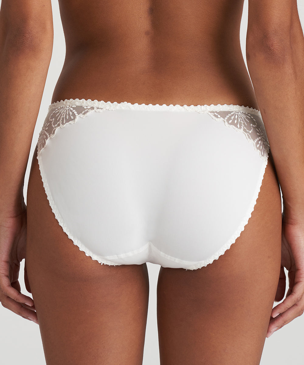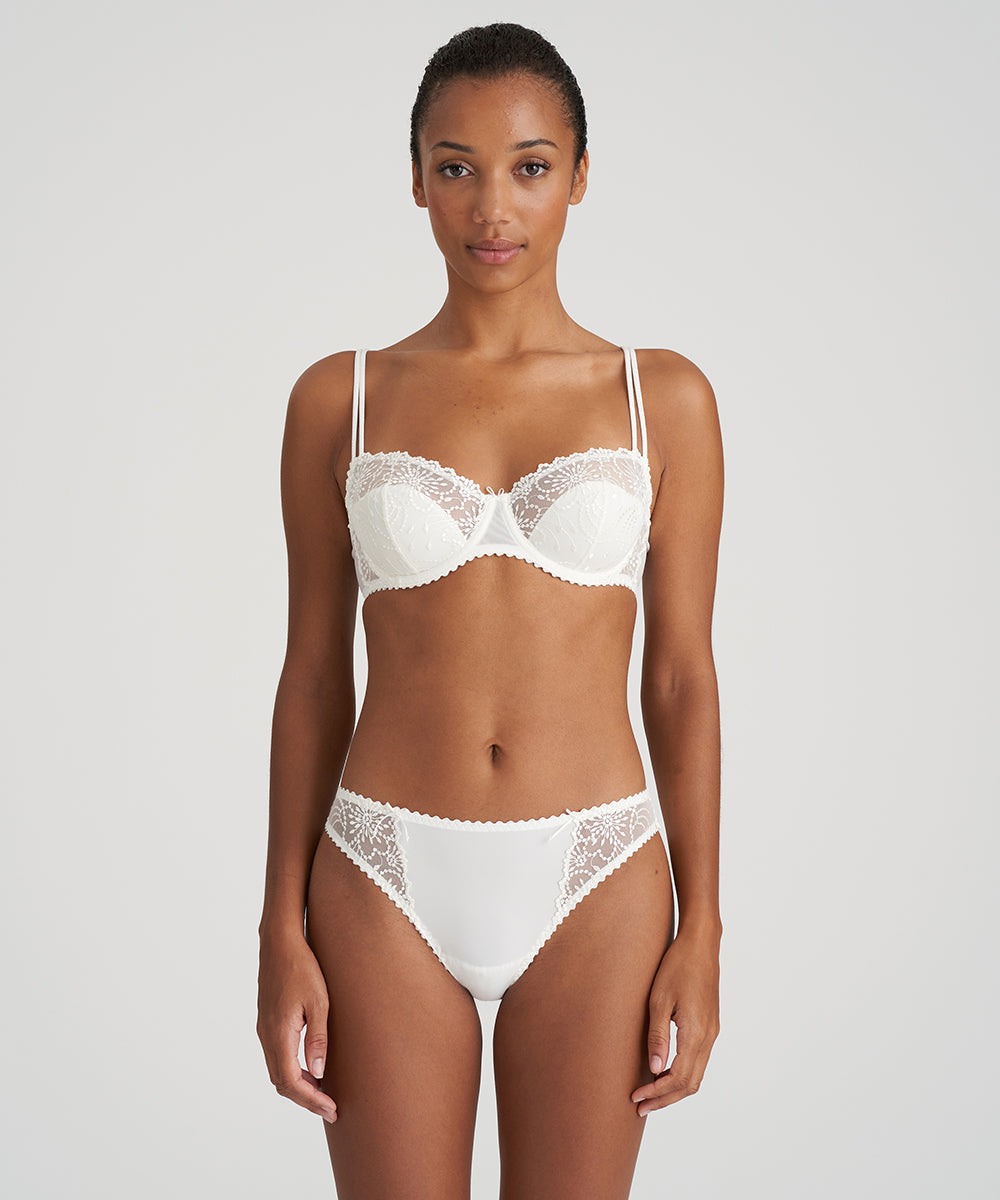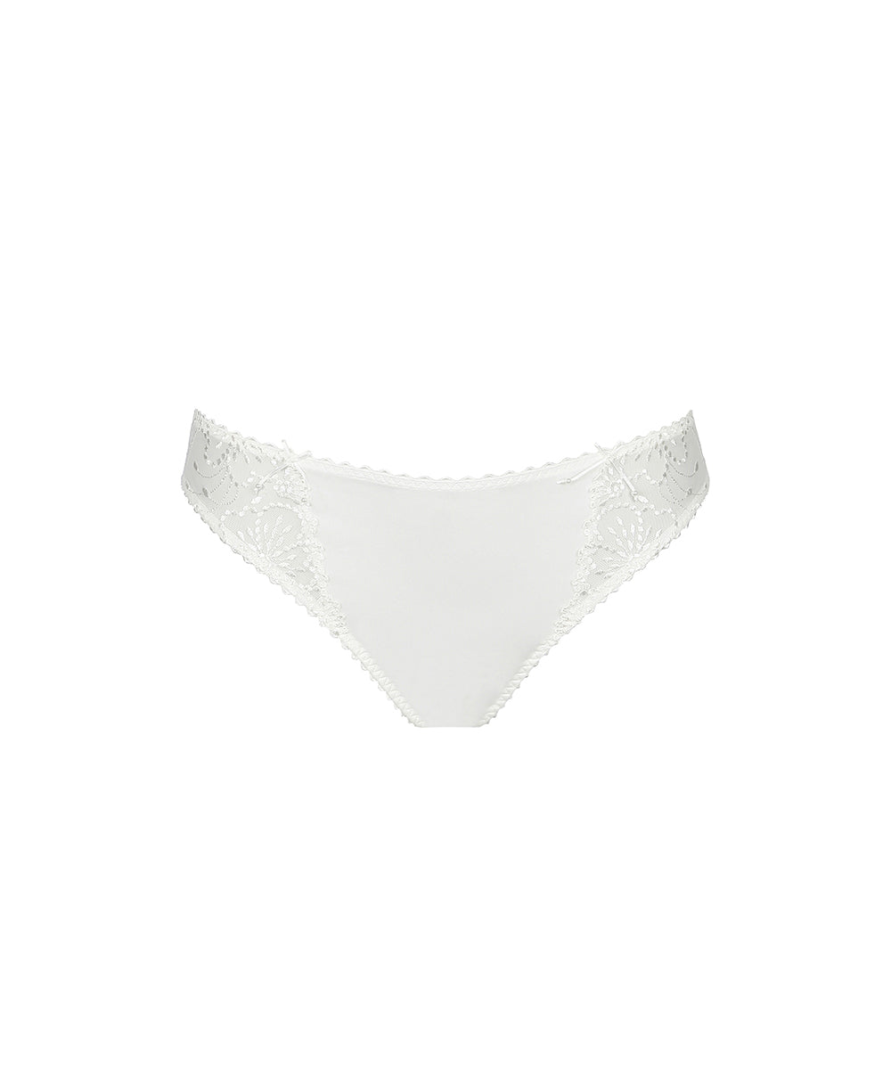 Elegant taitrusse fra Marie Jo lavet i mikrofiber med fine blomstrede broderier på hofterne. Trussen har ingen synlige trussekanter. Taitrussen er den bedstsolgte og mest almindelige trussetype. Taitrussen har som regel et skråt snit bagpå og dækker det meste af balderne. Et højt bensnit fortil og et smalt sidestykke får benene til at syne længere - altså er modellen god til dig, der gerne vil fremhæve ben og tilføre optisk længde.