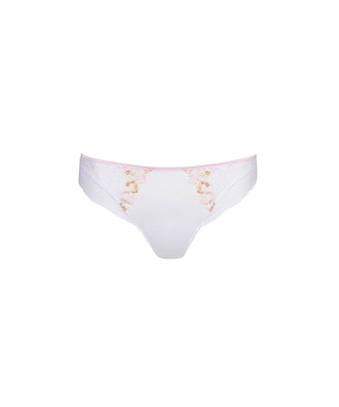 Yndig blonde taitrusse fra Marie Jo, som er lavet i superbløde og komfortable materialer. Trussen er prydet med en kombination af broderede blomster og blonder. Taitrussen er den bedstsolgte og mest almindelige trussetype. Taitrussen har som regel et skråt snit bagpå og dækker det meste af balderne. Et højt bensnit fortil og et smalt sidestykke får benene til at syne længere - altså er modellen god til dig, der gerne vil fremhæve ben og tilføre optisk længde.