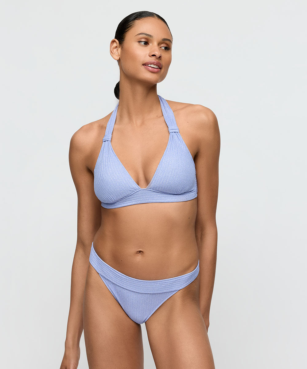 Trekantsbikini top fra Marie Jo i smukt print. Bikinitoppen er designet uden bøjle og med let foring, der giver en flot runding. De fine lurex tråde tilfører en diskret, glitrende effekt og giver designet et eksklusivt og elegant udtryk. Badetøj skal gerne sidde stramt, da det udvider sig ved brug. Husk altid at skylle badetøjet op i koldt vand efter brug.