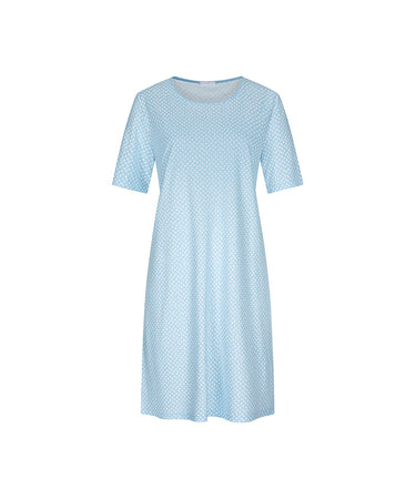 Elegant natkjole fra Mey med korte ærmer og et dekorativt prikket mønster. Kjolen er designet i et løst fit, knælang og har rund halsudskæring.