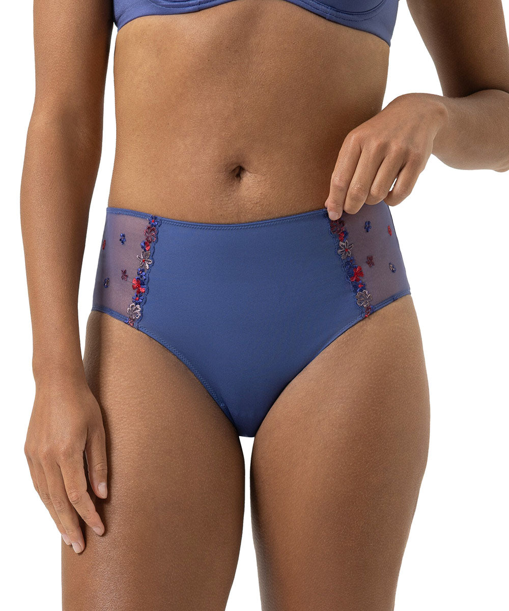 Yndige højtaljet trusse med blonde fra Mey. Maxitrussen er en højtaljet trusse med bredt sidestykke og lavt bensnit. Maxitrussen dækker den nederste del af maven og passer derfor godt til tøj, der går op i taljen.