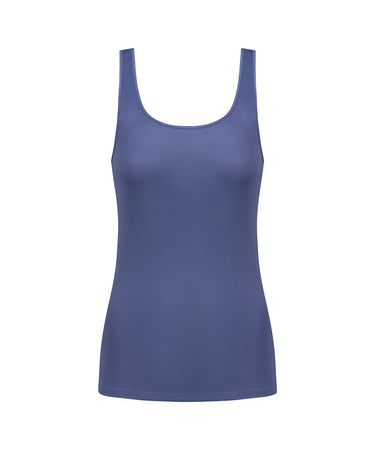Behagelig og enkel top fra Mey med rundudskæring og brede stropper. Toppen er designet uden generende sidesømme, og lavet i en åndbar kvalitet.