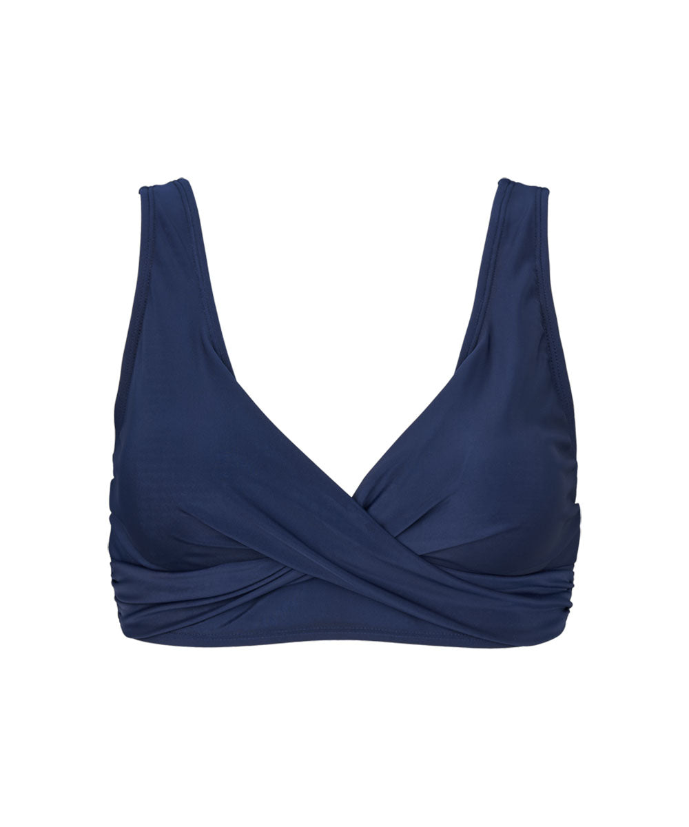 Trendy trekantsbikini fra Missya, let vatterede skåle og knude-detalje i midten. Bikinitoppen er designet uden bøjle. Badetøj skal gerne sidde stramt, da det udvider sig ved brug. Husk altid at skylle badetøjet op i koldt vand efter brug.