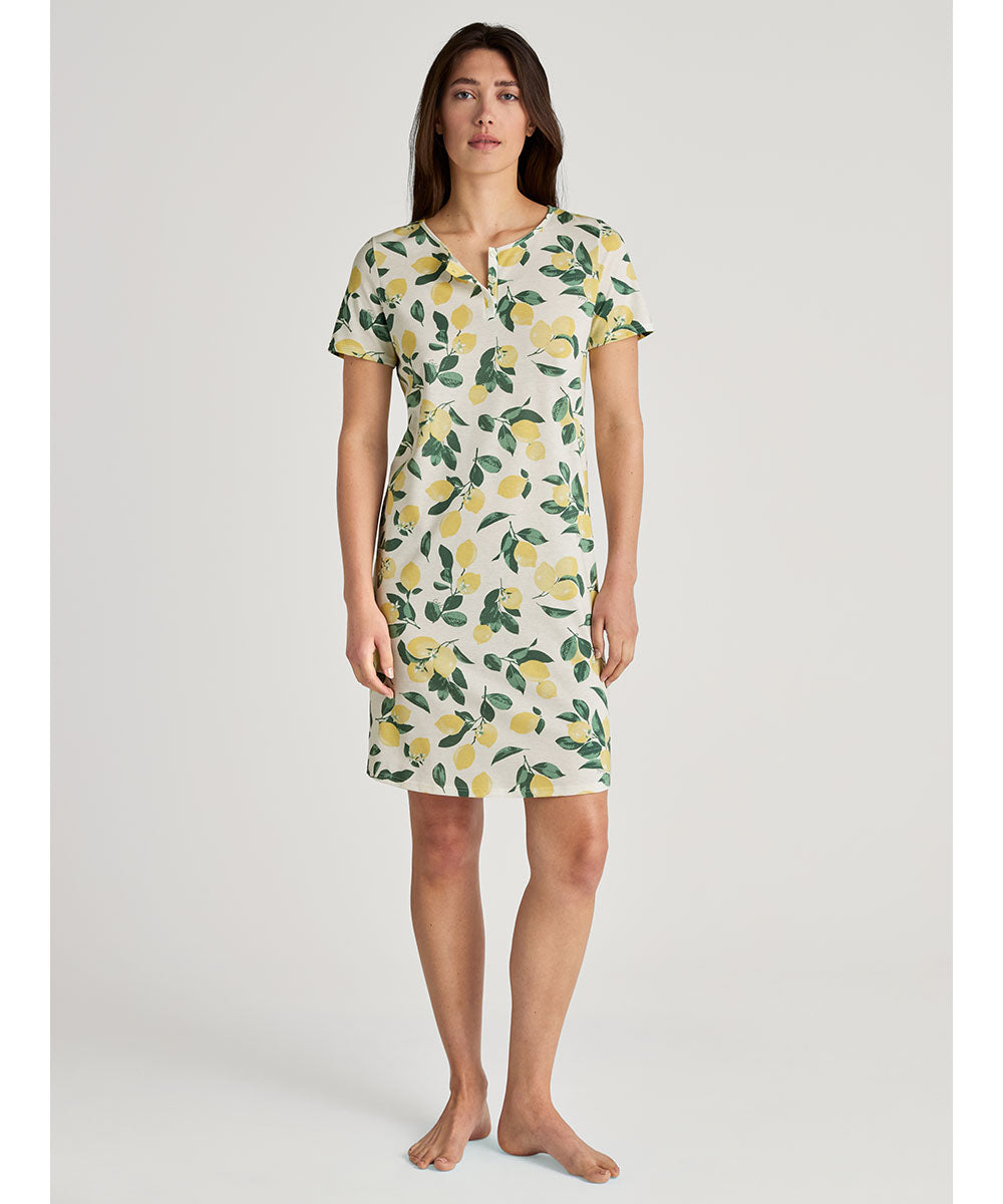 Elegant, kort natkjole fra Calida med kort ærmer i strikket jersey. Natkjolen er lavet i bløde materialer og har en rund halsudskæring. Vær obs på størrelsesguide.