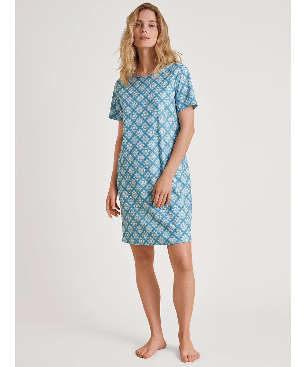 Komfortabel, knælang natkjole med t-shirt ærmer fra Calida. Natkjolen er designet med et skønt print. Natkjolen er lavet i en blød bomuld. Vær obs på størrelsesguide.