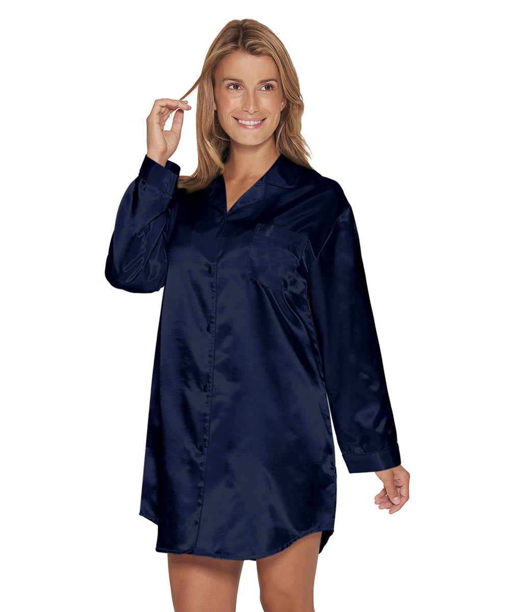 Homewear - Cotton & satin - Satin Long Sleeve Nightshirt - 355 INDIGO