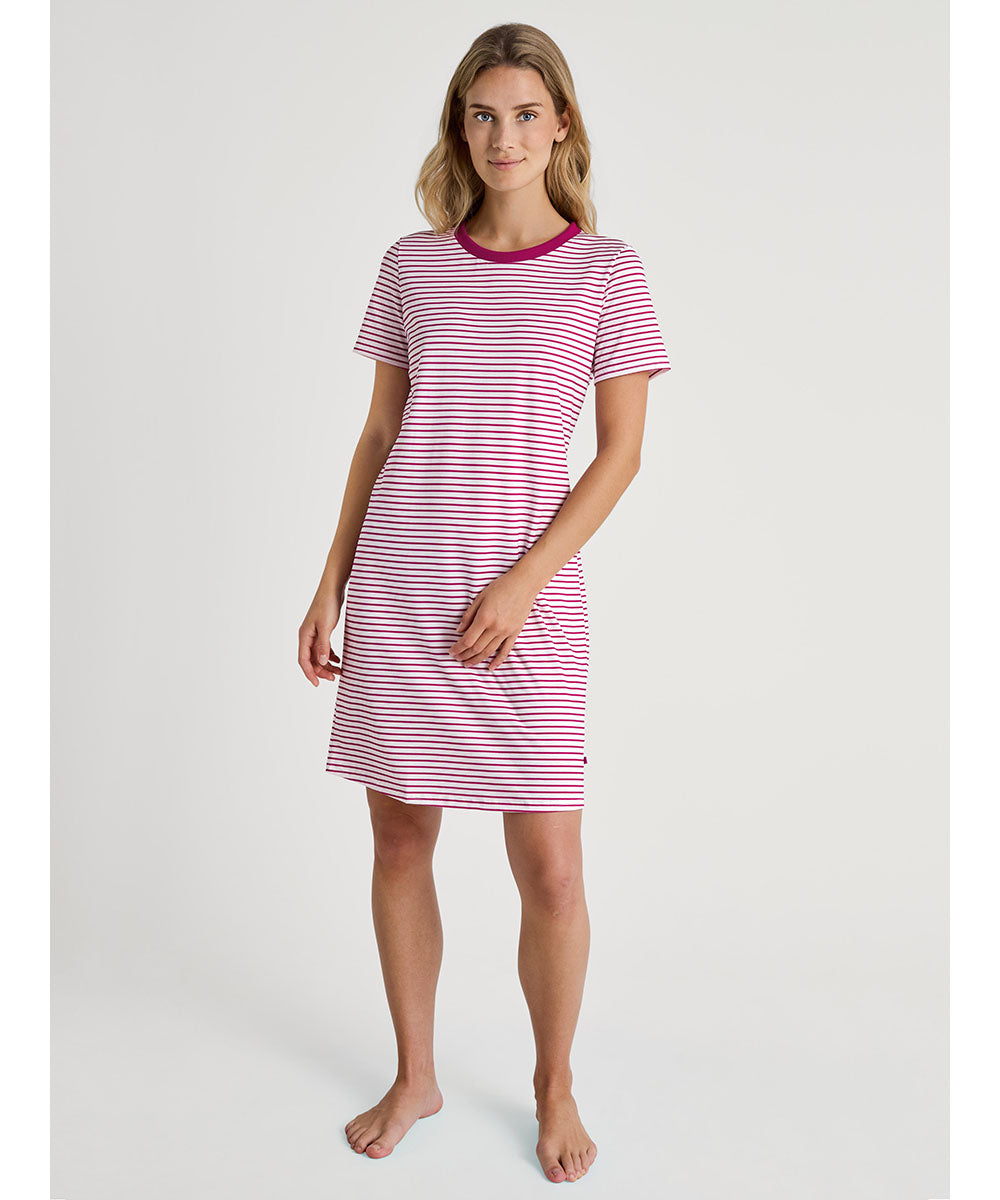 Elegant, kort natkjole fra Calida med kort ærmer i strikket jersey. Natkjolen er lavet i bløde materialer og har en rund halsudskæring. Vær obs på størrelsesguide.
