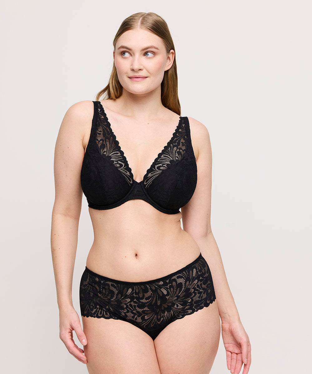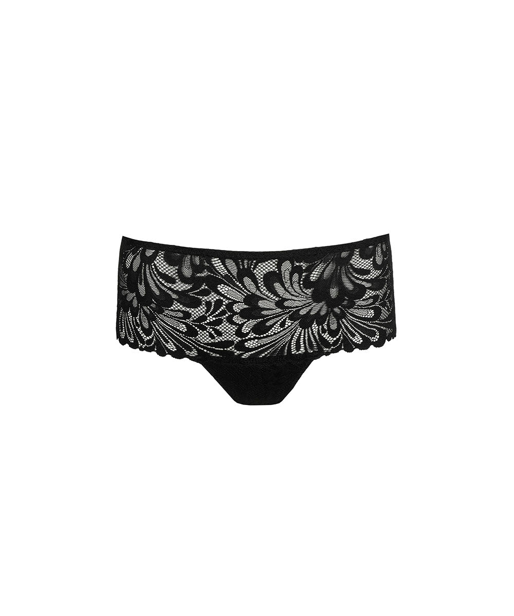 Elegant hipstertrusse fra PrimaDonna Twist. Hele trussen er designet i en smuk all-over blonde. Frontstykkets design giver et let og mere flatterende udtryk. Trussemodellerne hipster og shorts har en vandret benudskæring. Hipstertrussen går lidt op på balden og tegner et vandret snit mens shortsene dækker hele balden.